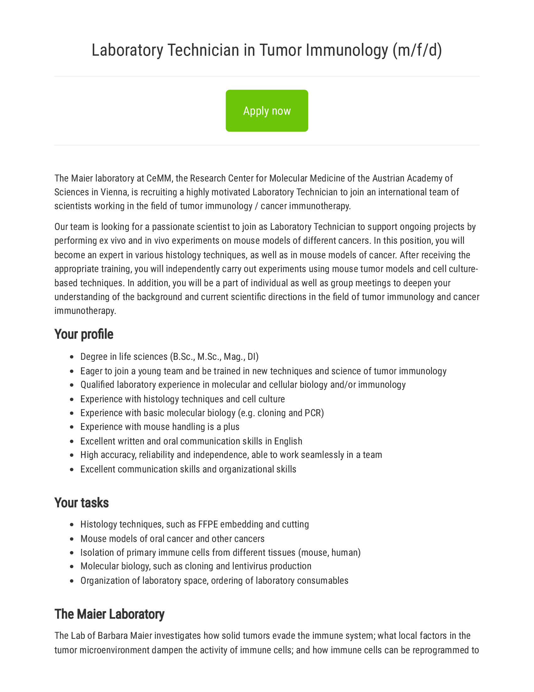 Alle Jobs von CeMM - Research Center for Molecular Medicine of the ...